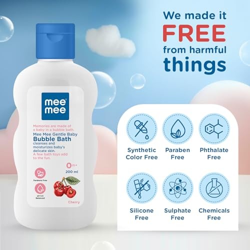 Mee Mee Foamy Baby Mild Bubble Bath 200ml, Pack of 1 | With Cherry & Fruit Extracts | Tear-Free Moisturizes and Soothes Skin | Infant Friendly, Natural Head to Toe Baby Wash, Dermatologically Tested – Fast Shipping to USA & Canada