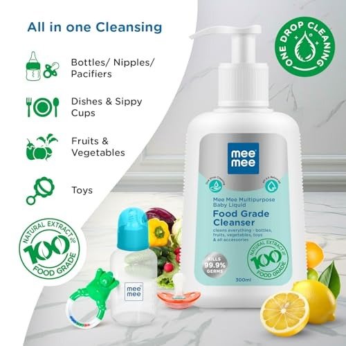 7 reviews for Mee Mee Food Grade Liquid Cleanser 300ml | Anti-Bacterial, Kills 99.9% Germs, 100% Natural Formula | For Baby Bottles, Accessories, Toys, Fruits & Veggies | One Drop Cleaning, Dermatologically Tested – Fast Shipping to USA & Canada