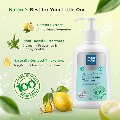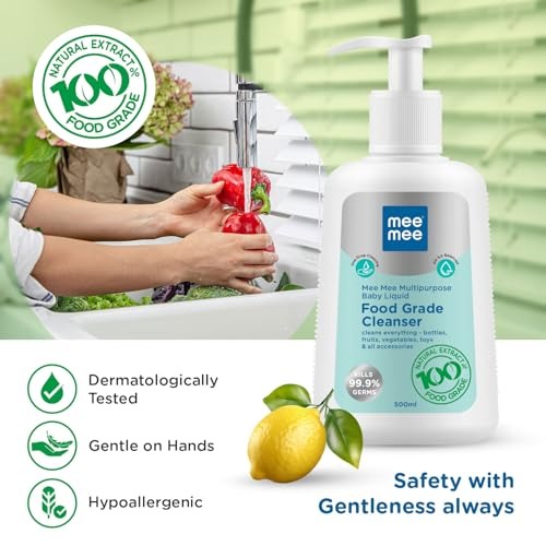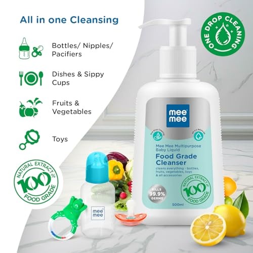 Mee Mee Food Grade Liquid Cleanser 500ml | Anti-Bacterial, Kills 99.9% Germs, 100% Natural Formula | For Baby Bottles, Accessories, Toys, Fruits & Veggies | One Drop Cleaning, Dermatologically Tested – Fast Shipping to USA & Canada