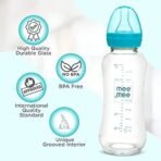 7 reviews for Mee Mee Glass Feeding Bottle 240ml| Eazy Flo Technology, Anti-Colic Valve, Anti-Slip Ergonomic Shape & Slim Neck | BPA-Free, Borosilicate Glass Feeding Bottle for 0m+/Babies Upto 3 Years (Blue) – Fast Shipping to USA & Canada