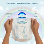 - TAPED STYLE DIAPER: Our tape-style diapers are designed with a high waist and 360-degree stretch, so your baby can move and play comfortably without feeling heavy or restricted. The adjustable waistband ensures a snug, cozy fit-just like a gentle hug-keeping your little one happy and comfortable all day long.