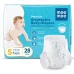 Mee Mee Premium Breathable Baby Diapers | Small Size Baby Taped Diapers | 28 PIECES | Skin Friendly, Super Absorbent, Cotton Soft with Wetness Indicator (Small, 28 PIECES) – Fast Shipping to USA & Canada