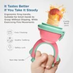 The gentle mesh design lets your baby safely suck and chew on tiny food pieces, which not only helps ease teething discomfort but also encourages healthy chewing habits. It?s a great way to introduce solids, allowing your baby to explore new tastes and textures independently while reducing the risk of choking. The feeder also comes with a handy cover to keep food clean and hygienic when not in use.