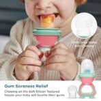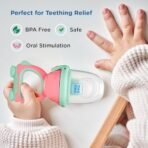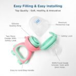 This baby teething feeder is made from safe, non-toxic, BPA-free food-grade polypropylene plastic, so you can feel confident letting your little one use it. It meets FDA and international safety standards, ensuring your baby won?t be exposed to any harmful substances while enjoying their food. The feeder features a soft silicone pouch that?s easy to fill with fresh fruit or other whole foods, providing a soothing way to help relieve sore gums during teething.