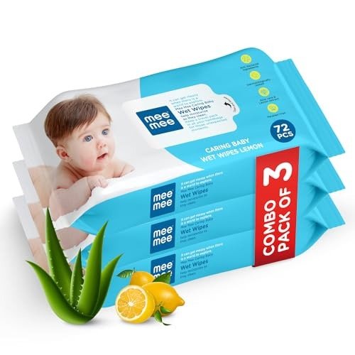 Mee Mee Soft Gentle Baby Wet Wipes (72 Wipes) Pack of 3 | Infused with Aloe Vera and Lemon extract | Paraben & Sulfate Free | Cleansing Wipes | Wipes Combo for Babies – Fast Shipping to USA & Canada