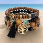 - Latest, stylish and trendy Beaded Multilayer Evil Eye Stackable Charm Bracelet. These bracelets are handcrafted with fine quality Beaded Stones. These bohemian style bracelets are very popular among girls and women