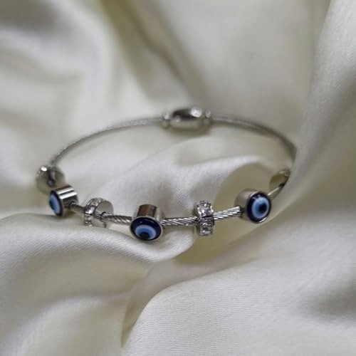 Made from a combination of silver, stainless steel, copper, brass, and alloy, this plain openable adjustable bracelet is both big and robust, making it suitable for both girls and boys. Its stylish design is perfect for parties, daily wear, and as a romantic gift for lovers, embodying themes of love, hearts, and the protective evil eye.