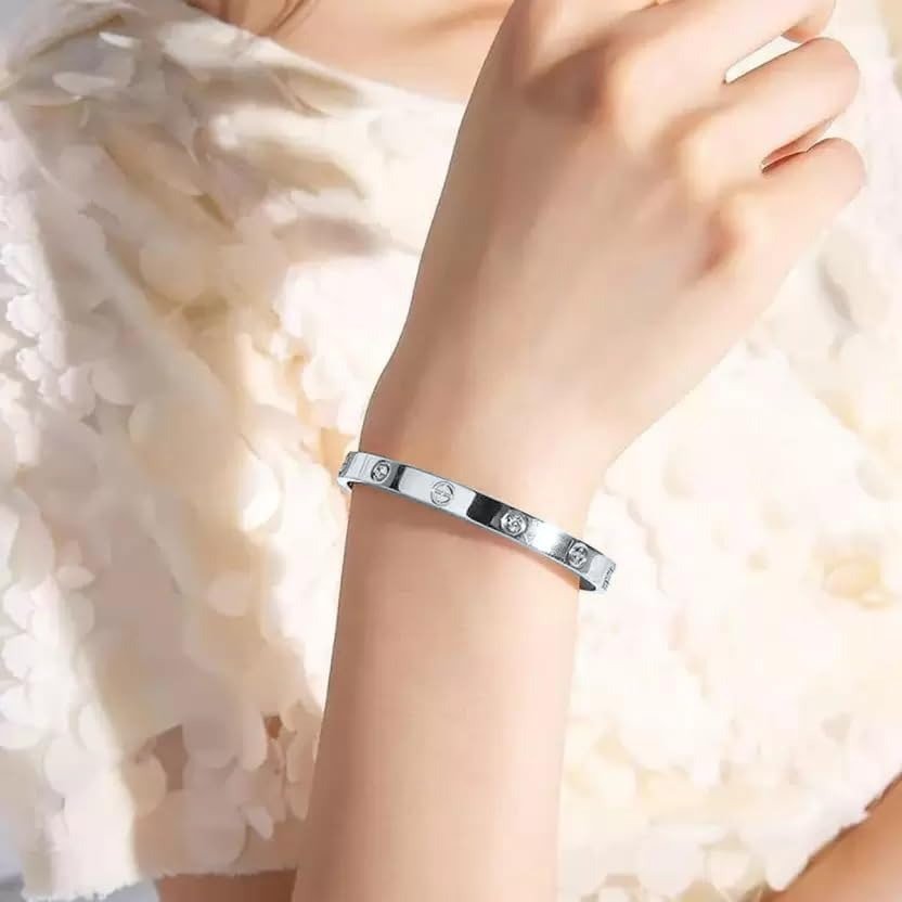 - Anti Tarnish Jewellery | 18K Gold Plated Stainless Steel Openable Crystal Bracelet | Latest Stylish Cuff Bangle | Love Friendship Couples Gifts for Women Girls Mother Sister Wife Girlfriend