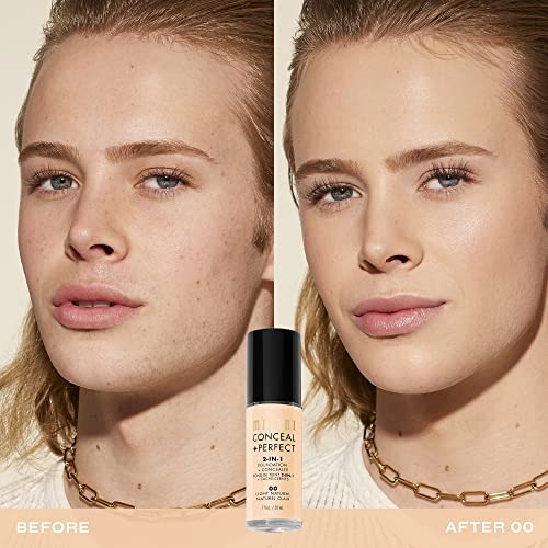 Milani Conceal + Perfect 2-in-1 Foundation + Concealer | Full Coverage Long Wear Makeup | Lightweight, Hydrating with Vitamin E | Covers Redness, Dark Circles, Crease-Proof, Paraben-Free | 00 Light Natural | 30ml – Fast Shipping to USA & Canada