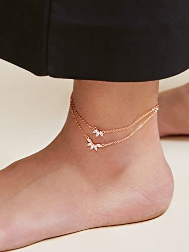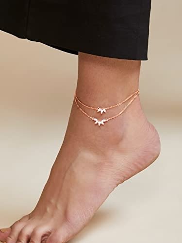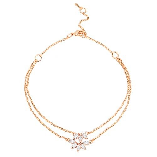 7 reviews for MINUTIAE Flower Shape Layered Anklet Solitaire Crystal Diamond Payal Foot Chain Jewelry for Women & Girls – Fast Shipping to USA & Canada