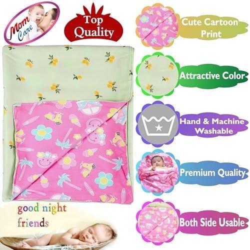 Explore a diverse selection of baby blankets from MOM CARE, available on AMAZON. Designed for infants aged 0 to 4 years, these cotton blankets are crafted from soft, gentle fabric to ensure your little one stays comfortable and cozy. The dohar blankets are suitable for both hand and machine washing, though bleaching is not recommended. They easily remove stains and dry quickly. Featuring adorable and eye-catching cartoon prints on both sides, these blankets are perfect for your child?s comfort and style.
