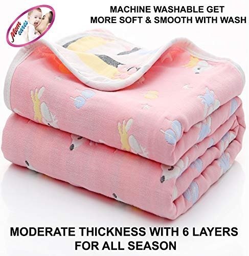 MOM CARE Muslin Blanket For Newborn Cotton Organic Extra Soft Swaddles Burp Cloth & Bath Towel Ideal For 0-24 Months Peach (Pack Of 1), 500 Tc – Fast Shipping to USA & Canada