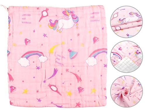 - Set contains: 2 pieces of soft muslin cotton napkins in pink, featuring adorable unicorn designs.