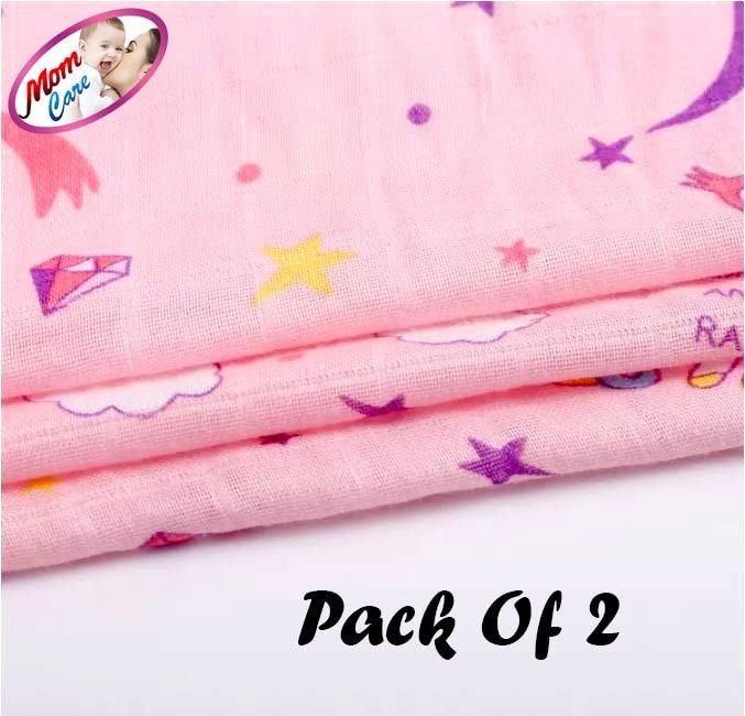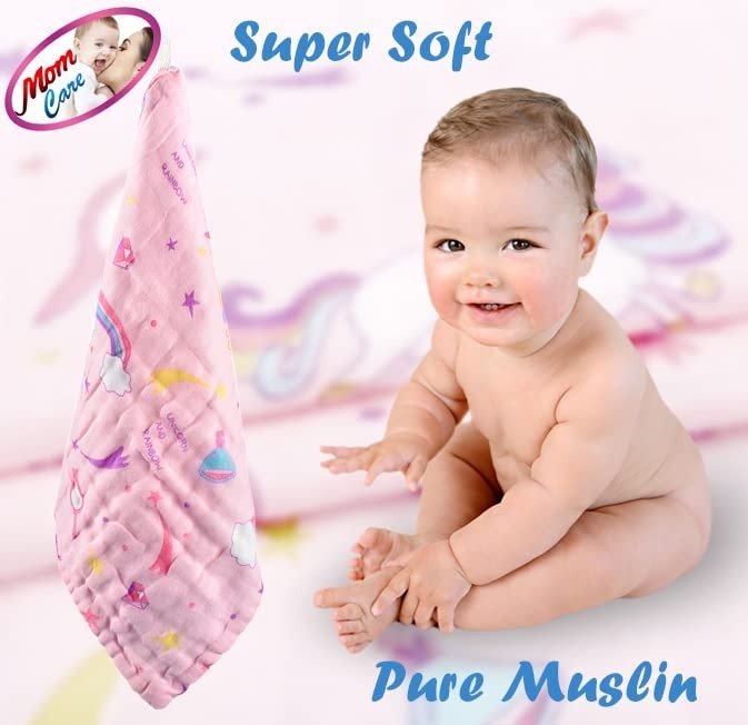 MOM CARE Muslin Cotton Face Towels for Newborn Baby Extra Soft Hankies Reusable Napkins for Infants Toddlers Boys and Girls (Pack of 2) Pink – Fast Shipping to USA & Canada