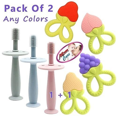 MOM CARE Silicone Baby Teether for Teething Gums,Fruit & Teething Brush with Textured Surface for Infants and Babies, 100% Food Grade Silicone, Tooth Brush Design, (Random Color) Pack of 2 – Fast Shipping to USA & Canada