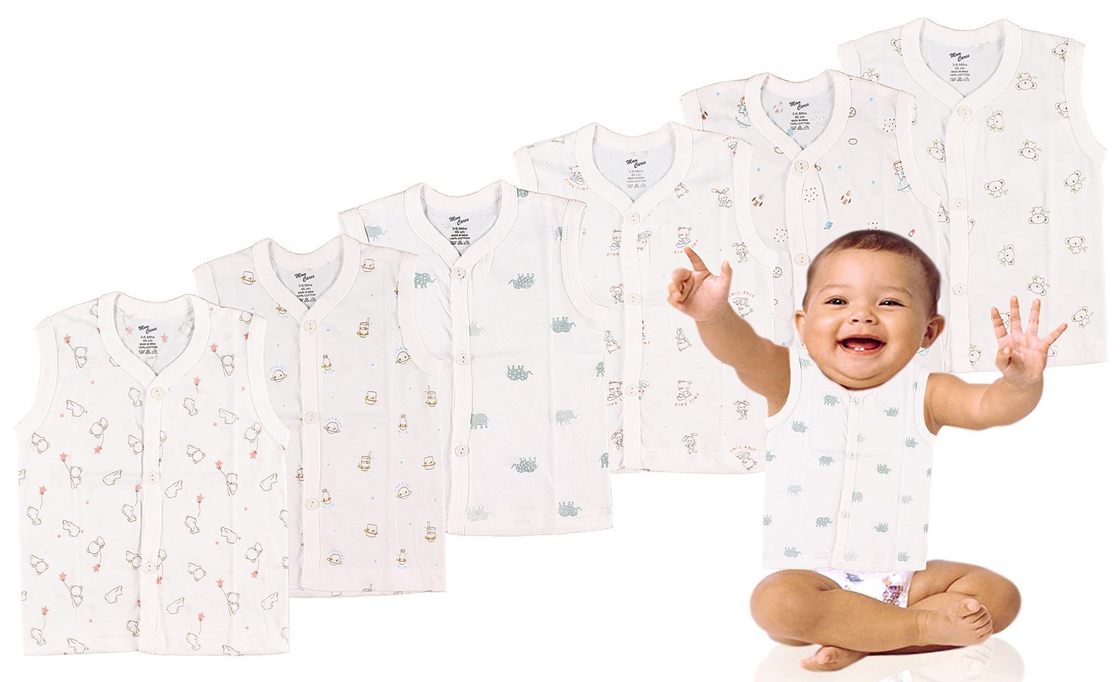 MOM CARE Unisex Baby Regular Fit Vest For 12-18 Months Cotton Sleeveless For Boys And Girls Sando Baniyan Combo (Pack Of 6) White – Fast Shipping to USA & Canada