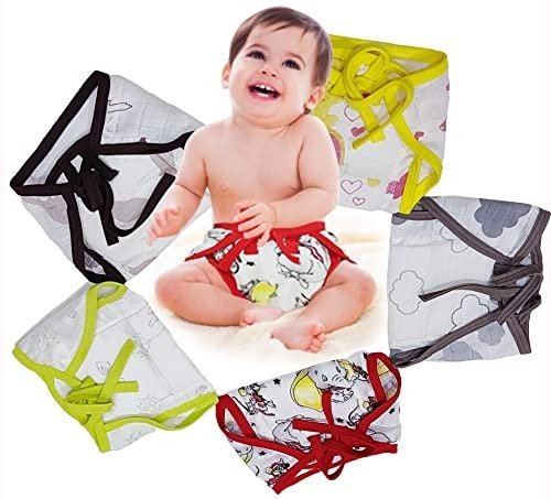 MOM CARES Muslin Cloth Nappies For Newborn Baby,Reusable Diapers, Cotton Langots,U Shaped Double Layer Nappy For boy and girl (Pack of 5) (9 Months up) Multicolor – Fast Shipping to USA & Canada