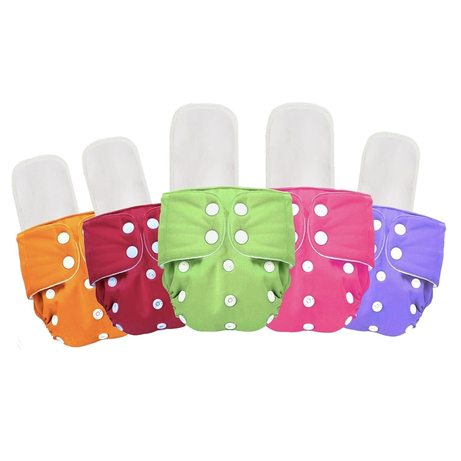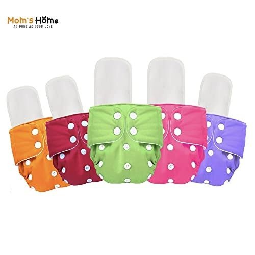 MOM’S HOME Baby Reusable Cotton Pocket Diapers With 5 Inserts,Adjustable 0-12 Months-Pack Of 5 – Fast Shipping to USA & Canada