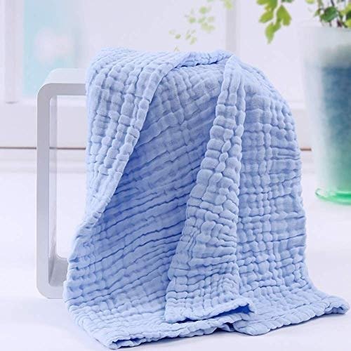 MOM’S HOME Baby Super Soft Absorbent Muslin 6 Layer wash Towel- 100X100 CM – (0-3 Years)- Blue and 5 Muslin naplin Wipes – Fast Shipping to USA & Canada