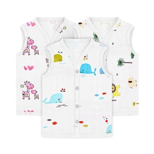 MOM’S HOME Baby Unisex Organic Cotton Muslin Jhabla – Giraffe, Lion, Whale | Pack of 3 – Fast Shipping to USA & Canada