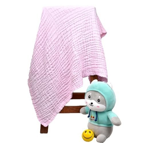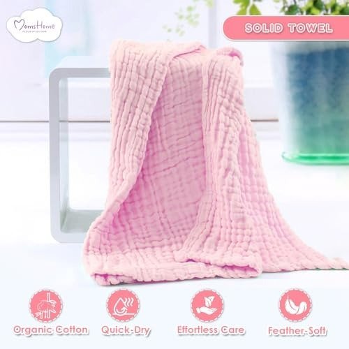 MOM’S HOME Cotton Baby Super Soft Absorbent Muslin 6 Layer Wash Towel- 100X100 CM – (0-3 Years)- Pink – Fast Shipping to USA & Canada