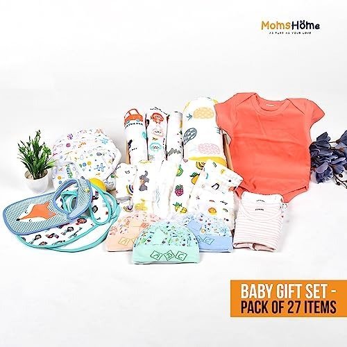 MOM’S HOME New Born Baby Hospital Essentials Gift Box Multicolor – Pack of 27 Items – Fast Shipping to USA & Canada