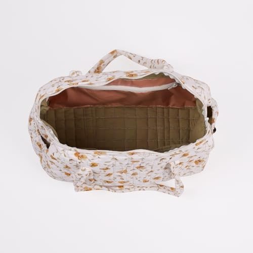 This diaper bag provides ample storage and numerous compartments for organizing both baby necessities and mom?s belongings. It boasts a spacious main section with a secure zipper closure, a convenient front pocket for quick access to essentials, and bottle holders on each side. There?s also a zippered waterproof compartment designed for damp clothes or towels, along with easily accessible interior pockets for toys, diapers, or wipes. The practical straps make it ideal for any outing, whether you?re heading to the park or embarking on a longer trip. Crafted from lightweight cotton with stylish quilted accents, it?s perfect as a hospital or travel bag and makes a thoughtful present for new mothers. Additionally, the waterproof inner pocket offers peace of mind against spills.