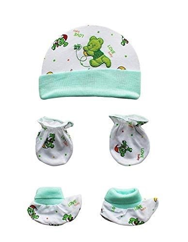 Set of 4 Packs ? Cap, Mittens, and Booties ? Crafted from premium 100% cotton for exceptional softness, free from harsh dyes and chemicals. The organic cotton fabric is gentle and non-irritating on your baby?s delicate skin, ensuring comfort and safety. Stylish in appearance, this set makes an ideal gift for newborns.