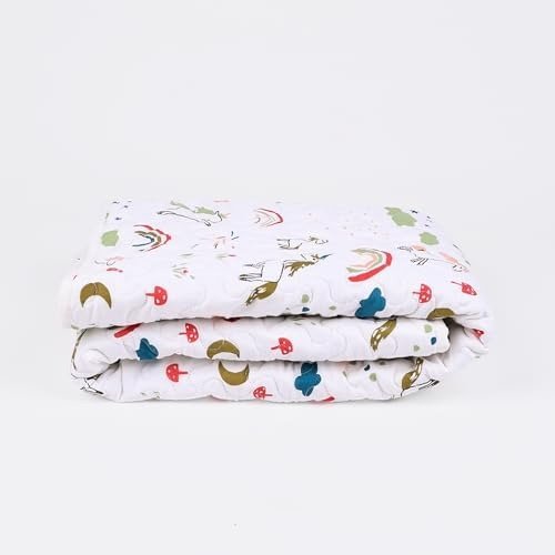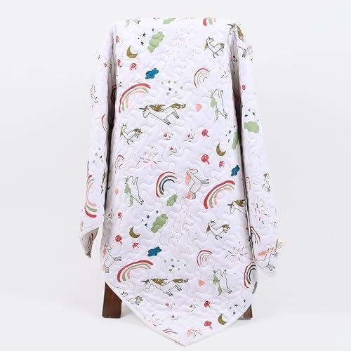 MOM’S HOME Organic Cotton All Season Baby Quilt | Light Weight | Soft | Perfect for Light Winters | 100×120 cm | 0-3 Year | Unicorn | Reversible – Fast Shipping to USA & Canada