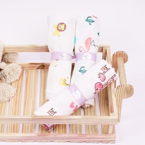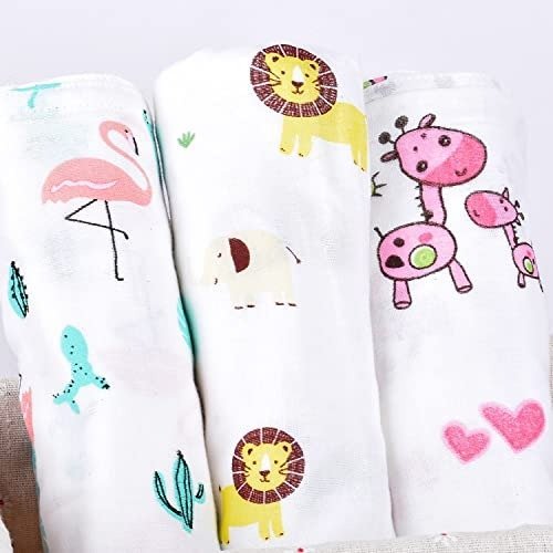 MOM’S HOME Organic Cotton Baby Muslin Swaddle – Pack of 3-100×100 cm (PinkGirafLionFlamingo) – Fast Shipping to USA & Canada