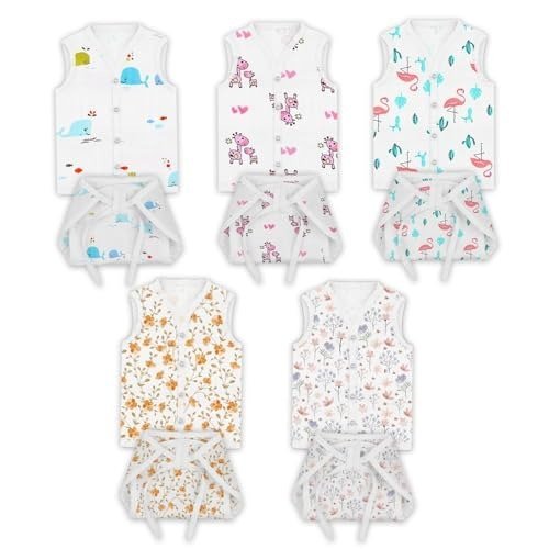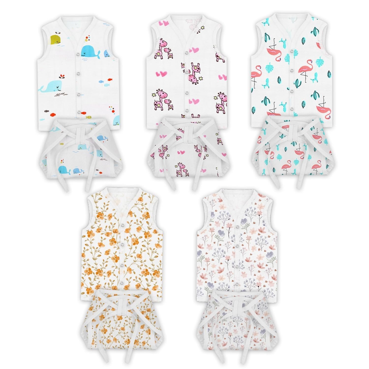 MOM’S HOME Organic Cotton Muslin Jhabla and Nappy for New Born Baby | Bloom, Blossom, Pink Giraffe, Flamingo & Whale | Pack of 5 – Fast Shipping to USA & Canada