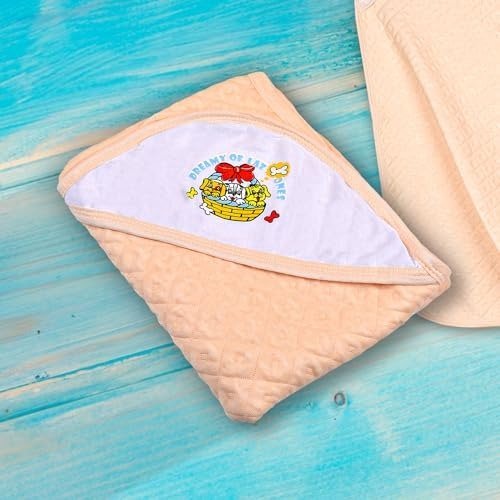MOM’S HOME Super Soft Organic Cotton Baby Hooded Wrap Towels – 0-2 Years – Peach – Fast Shipping to USA & Canada