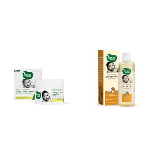 Mother Sparsh Combo of Plant Powered Diaper Rash Cream for Babies + Cold Pressed Virgin Coconut Oil for Baby Skin & Hair Care 200ml – Fast Shipping to USA & Canada