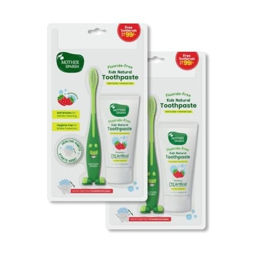 Mother Sparsh Natural Toothpaste for Kids-50g (With Free Toothbrush), Strawberry (Pack of 2) | Strengthens Gums, Whitens Teeth | Anti Cavity Baby Toothpaste Free from Preservatives & Fluoride – Fast Shipping to USA & Canada