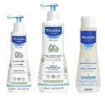 - Essential Bathtime Collection: The Mustela Bathtime Essential Set features three indispensable baby bathing products: Hydra Bebe Body Lotion (300ml), Gentle Cleansing Gel (500ml), and Gentle Shampoo (200ml), ensuring a comprehensive and soothing bathing experience.