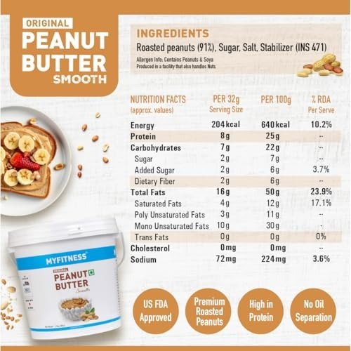 - DECADENT NUT-LADEN SPREAD – Treat yourself to the sumptuous, nutty essence of MyFitness Original Peanut Butter. This delightful spread fuses the classic American formula with a distinctive desi flair, delivering an ideal harmony of savory notes and creamy consistency. Every mouthful lets you relish the signature, indulgent taste that defines MyFitness.
