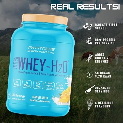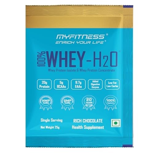 - Myfitness 100% Whey H2O is your ideal choice for pure muscle nourishment and quicker recovery! ?? Every 25g serving contains a robust 20g of ultra-clean whey protein, offering an outstanding 80% protein concentration to support lean muscle growth and effective tissue repair.