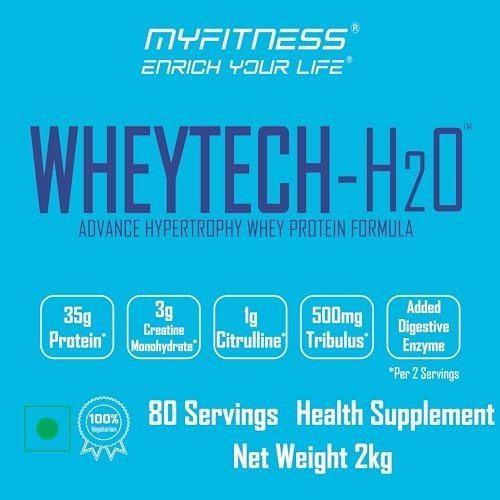 - Myfitness Wheytech H2O Blend features 35g of a premium protein mix, combining whey protein concentrate and isolate for optimal results. Enhanced with creatine, citrulline, tribulus, and digestive enzymes, this formula is designed to deliver superior performance and absorption.