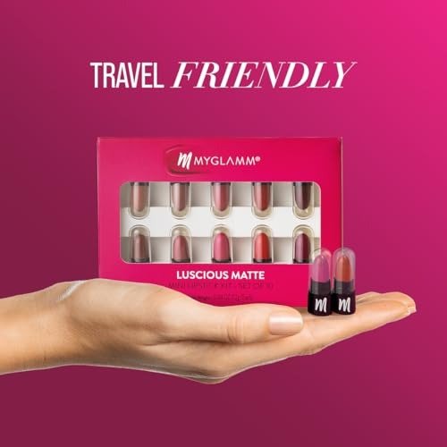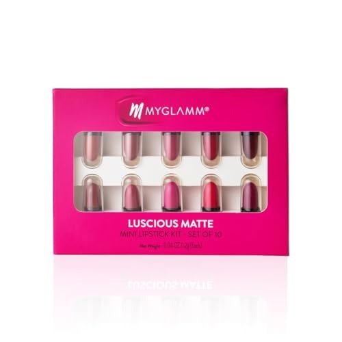MyGlamm Luscious Matte Mini Lipstick Kit – Set of 10 | Nude & Bold Lipstick Combo For Women | Long Lasting, Creamy, Moisturising & Pigmented Mini Lipsticks (1.2g x 10) – Fast Shipping to USA & Canada