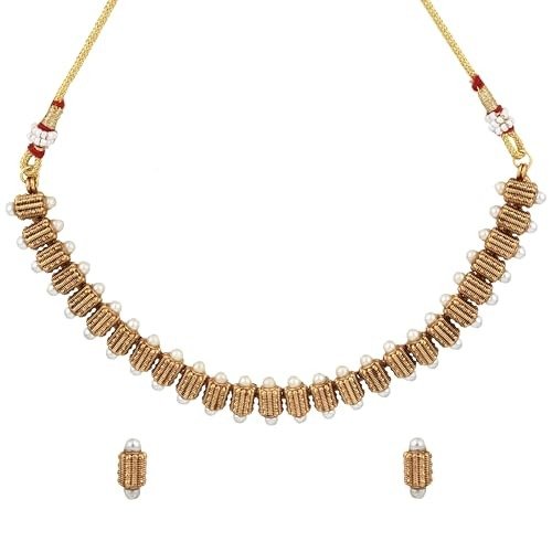 Enhance your ethnic allure with this exquisitely handcrafted necklace set, crafted to harmonize traditional sophistication with contemporary artistry. Meticulously created by talented artisans, this ensemble features a striking necklace along with coordinating earrings that beautifully pair with both festive and casual ethnic attire. Constructed from premium materials and showcasing a distinctive design, it imparts an elegant and timeless essence to your jewelry collection?ideal for weddings, celebrations, and special events.