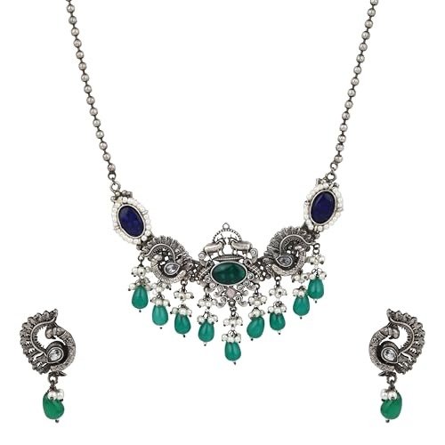 Enhance your cultural allure with this exquisitely handcrafted necklace set, crafted to harmonize traditional sophistication with contemporary artistry. Meticulously created by talented artisans, this ensemble features a striking necklace paired with coordinating earrings, ideal for both festive and casual ethnic attire. Constructed from premium materials and showcasing a distinctive design, it imparts an elegant and enduring element to your jewelry collection?perfect for weddings, celebrations, and memorable events.