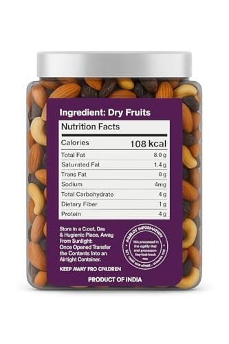 To satisfy your cravings and provide you with a delectable treat, Nature Prime has introduced a mixed selection of dried fruits designed to keep you fit while delighting your palate. This nutritious and scrumptious snack is abundant in potassium, fiber, and vitamin E, which can aid in heart health, digestion, and maintaining skin vitality. Additionally, it serves as an excellent pre- or post-workout protein boost for fitness enthusiasts and those focused on weight management. Rich in magnesium and phosphorus, this superfood mix is particularly beneficial for both the elderly and young adults, promoting strong and healthy bones. Make your snacking experience effortless and even more enjoyable with our naturally gluten-free assortment of nuts and dried fruits. Our product is meticulously packaged to guarantee optimal freshness, allowing you to relish the delightful flavor and health benefits of our mixed dried fruits for weeks. You can purchase with confidence. So, why delay? Try our Mixed Dry Fruits today and discover the ideal combination of taste and nutrition!