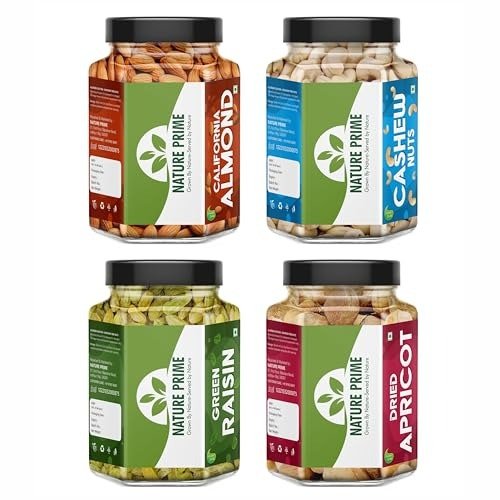 6 reviews for Nature Prime Fresh and Healthy Dry Fruits Combo Pack of Almond, Cashew, Raisin, Apricot (200g * 4) 800G JAR PACK – Fast Shipping to USA & Canada
