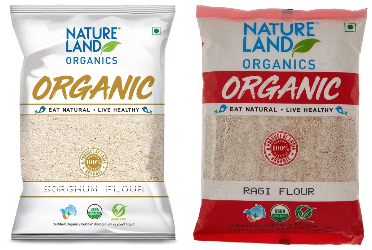 Natureland Organics Sorghum/Jowar Flour 500 Gm – Organic Flours & Ragi Flour 500 Gm – Organic Flour – Fast Shipping to USA & Canada