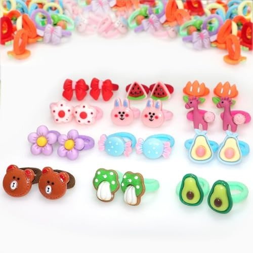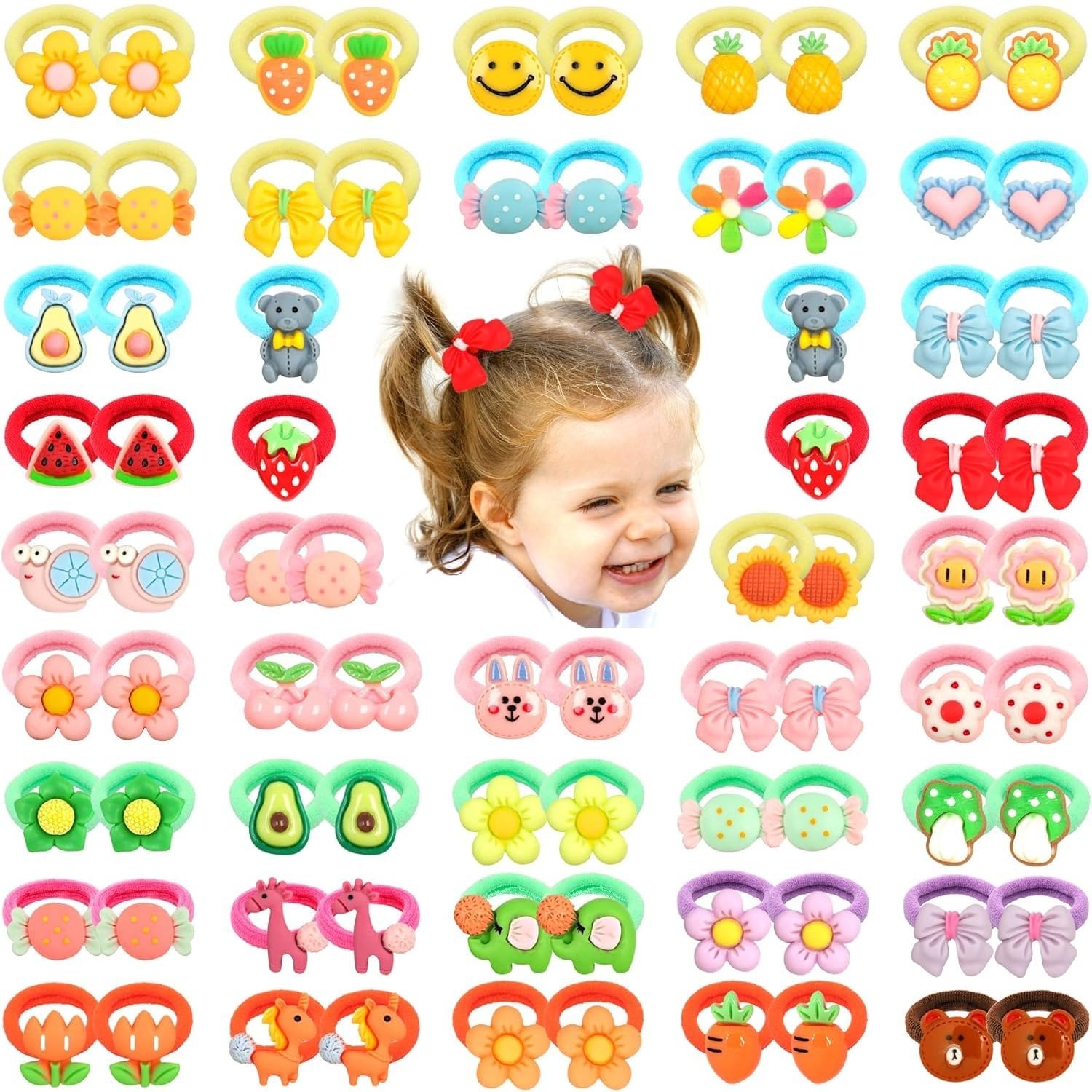 NEOBABY Colorful Elastic Kids Hair Band | Girls Hair Tie Cartoon Small Ponytail Holders Animal Flower Fruit Hair Accessories for Baby Girls Toddler Girls Infants (Random Designs, Pack of 24 pairs) – Fast Shipping to USA & Canada