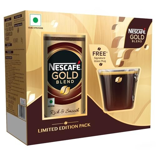 • SIGNATURE GLASS COFFEE MUG: Enhance your coffee enjoyment with a complimentary NESCAFE Gold Signature Mug, designed to allow you to fully appreciate the velvety flavor and deep fragrance of NESCAFE Gold.