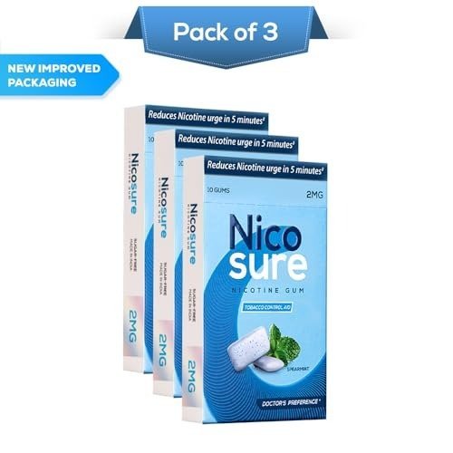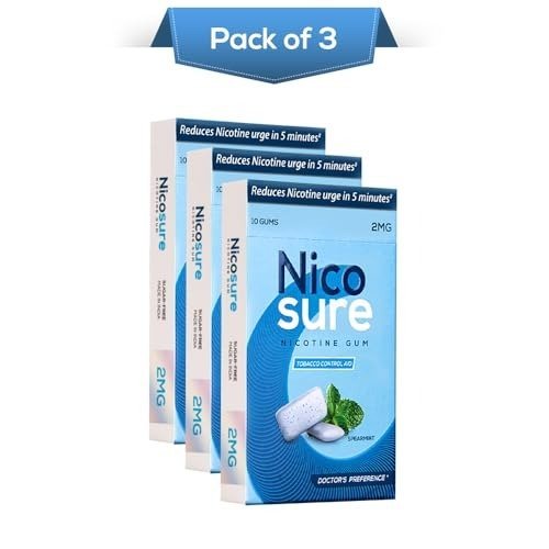Nicosure Nicotine Gum-2mg-Pack of 3-30 Gums|Tobacco Control Aid|Spearmint Flavour|Doctors’ Preference|Aids in Quitting Tobacco|Great taste| Long lasting flavour|Sugar-free – Fast Shipping to USA & Canada
