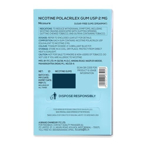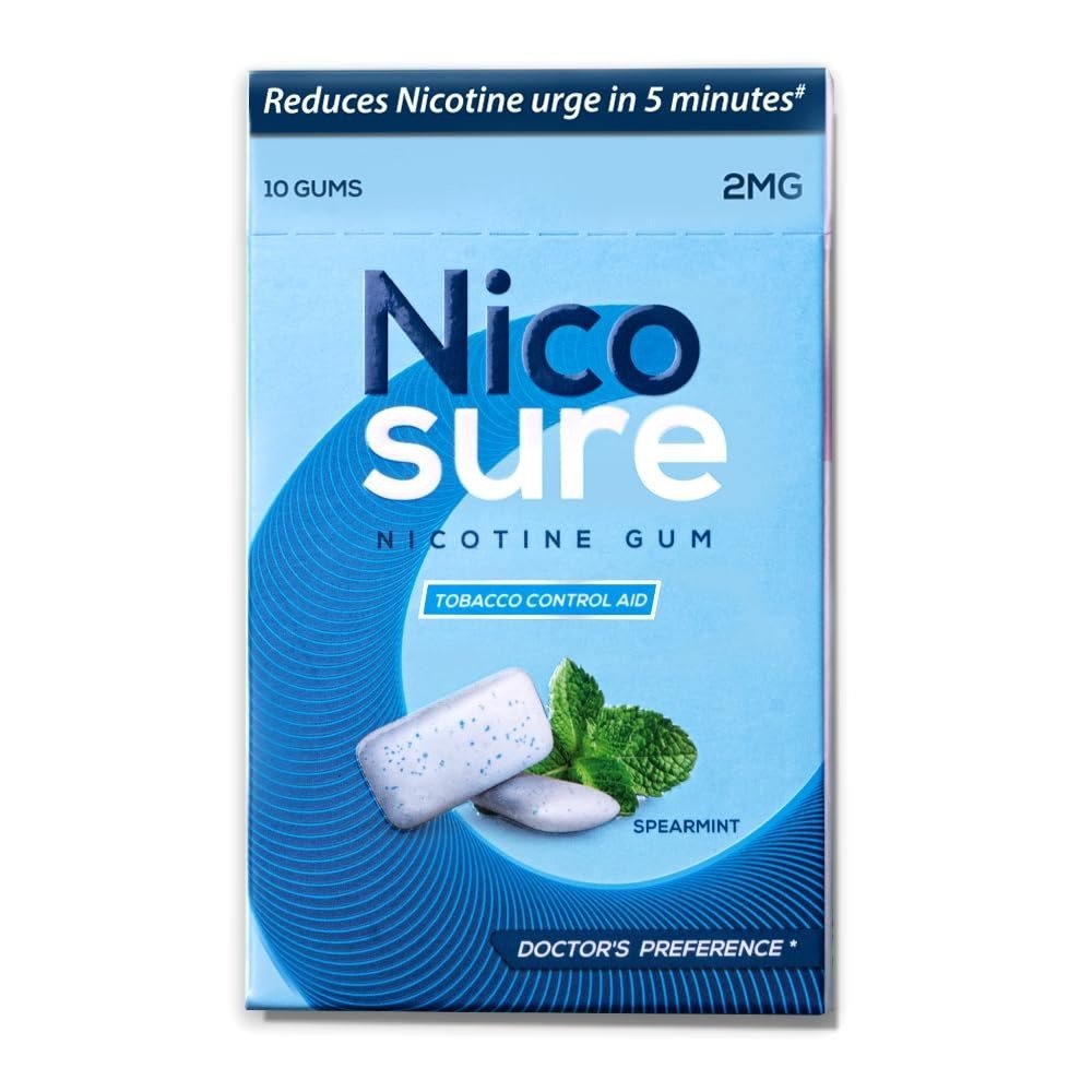 Nicosure Nicotine Gum-2mg-Pack of 9-90 Gums|Tobacco Control Aid|Spearmint Flavour|Doctors’ Preference|Aids in Quitting Tobacco|Great taste| Long lasting flavour|Sugar-free – Fast Shipping to USA & Canada