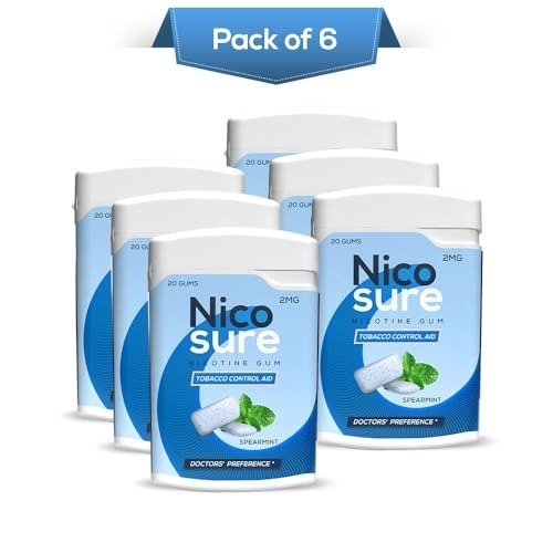 Nicosure Nicotine Gum Container Pack-2mg-Pack of 6-120 Gums|Tobacco Control Aid|Spearmint Flavour|Doctors’ Preference|Aids in Quitting Tobacco|Great taste| Long lasting flavour|Sugar-free – Fast Shipping to USA & Canada