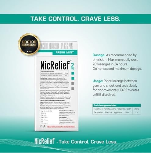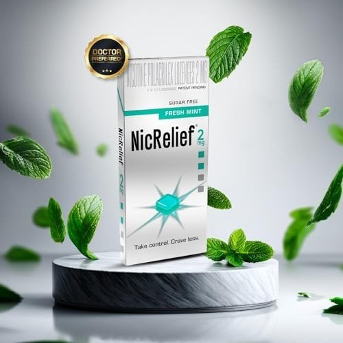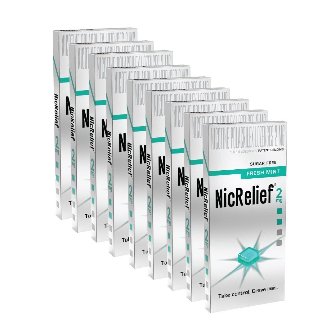 NicRelief empowers you to maintain control when cravings strike. With a sugar-free, refreshing mint flavor and a soothing effect on your throat, you can quit smoking without disrupting your daily habits. Unlike gum or patches, NicRelief nicotine lozenges are crafted to naturally manage your tobacco urges by providing a measured, lower dose of nicotine-helping you navigate every challenging moment with ease. - Quit Tobacco for Good with a Science-Backed Solution: NicRelief supports your journey to quit tobacco, one step at a time. Crafted with a unique, patent-pending formula, each lozenge gradually delivers nicotine for sustained comfort. Adhering to the NRT guidelines recommended by the WHO, NicRelief is designed to gently absorb through the mouth?s inner lining, providing quicker relief without irritating your throat. Whether you?re facing a stressful situation or navigating your daily routine, NicRelief empowers you to remain composed and in control-one lozenge at a time.